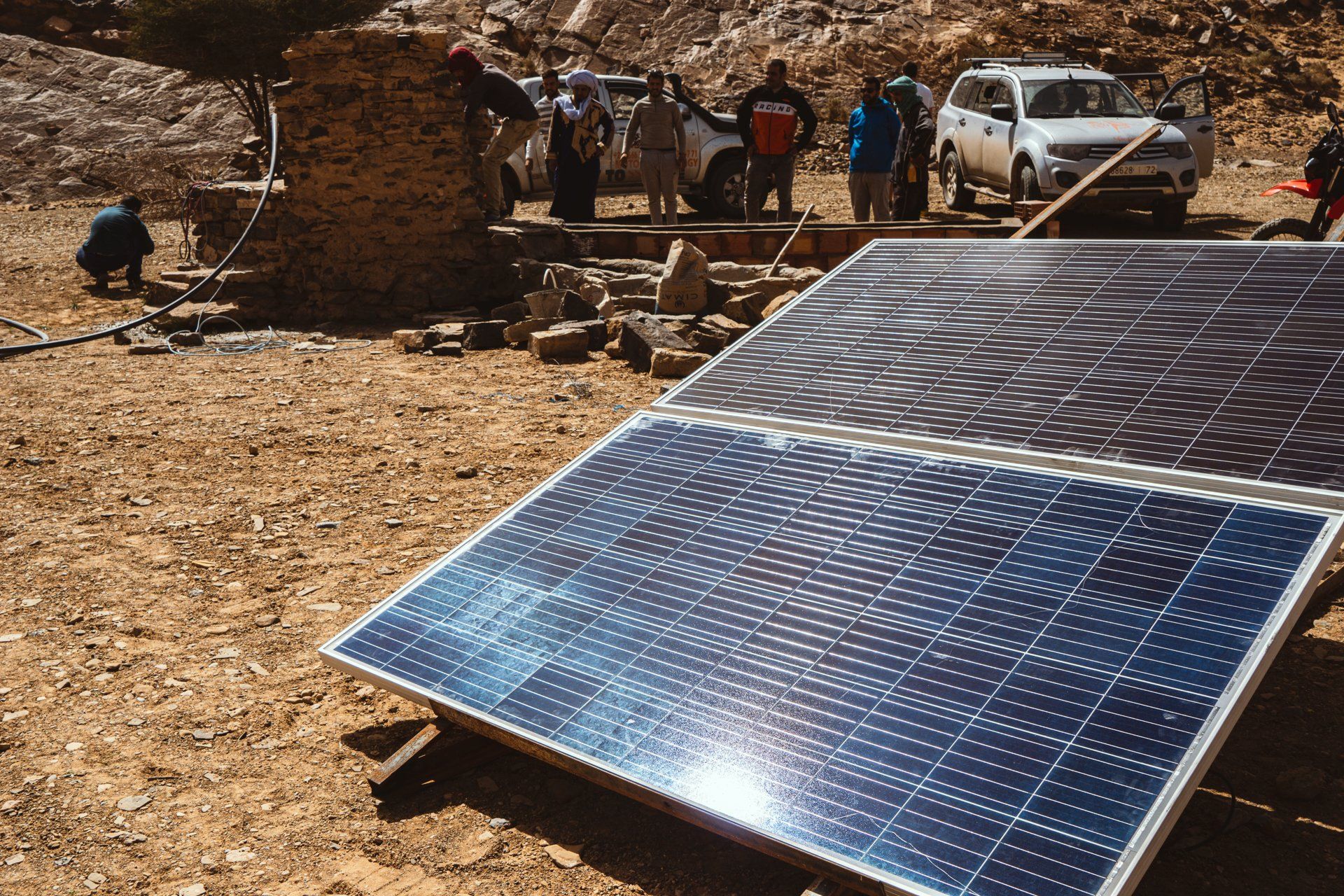 The first solidarity project that we have carried out has been to equip a well in the Sahara Desert with an automatic water extraction system, with the installation of a water pump and solar panels. In addition to building a large drinking fountain so that the animals from the nomads' herds can drink easily.